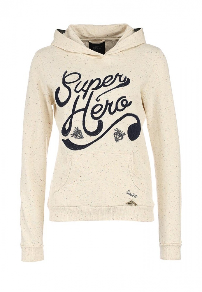 Удобное худи Sela выполнено из натурального хлопка бежевого цвета, махровая подкладка. Детали: прямой крой, капюшон окантован тесьмой, карман-кенгуру, вышивка декорирована бисером, металлическая подвеска.